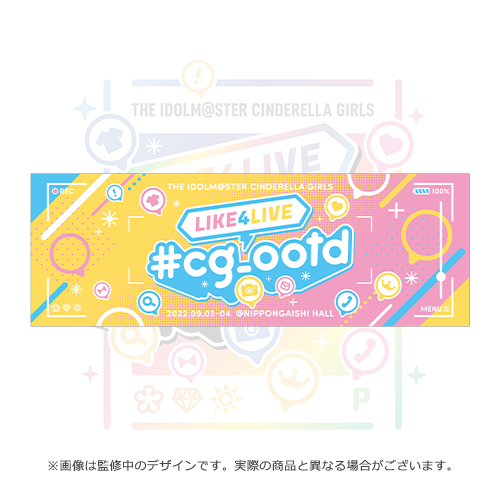※「THE IDOLM@STER CINDERELLA GIRLS LIKE4LIVE #cg_ootd イベントグッズ 直前販売」のページ内アイテムは、公演前に配送を行うため、2022年8月21日(日)まで販売いたします。お届けは、2022年8月下旬より順次発送予定です。