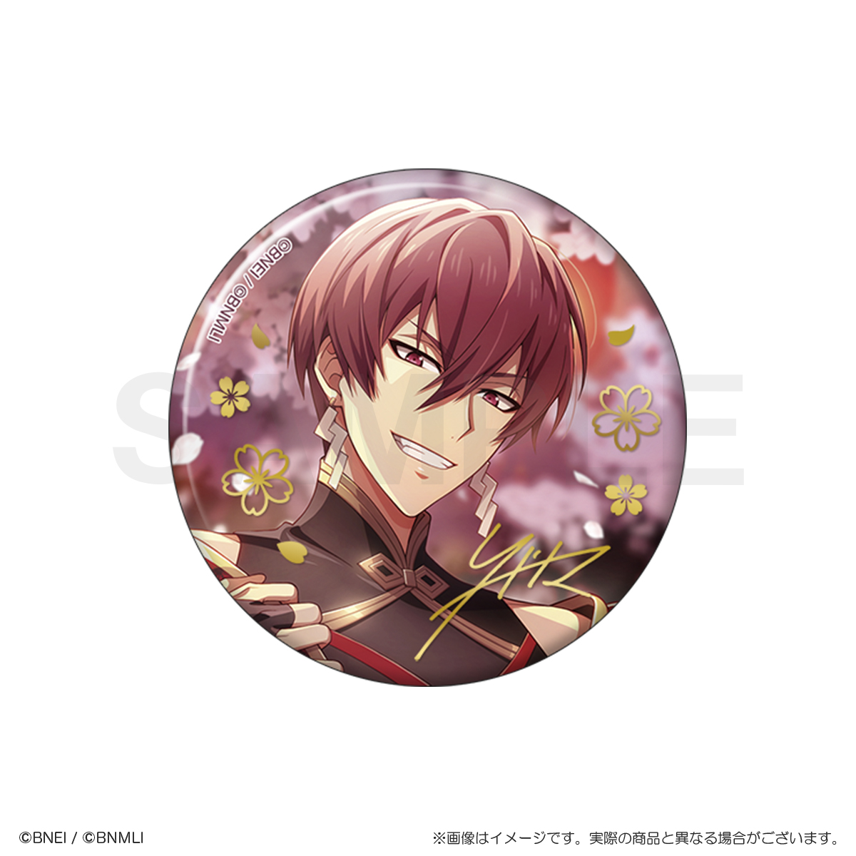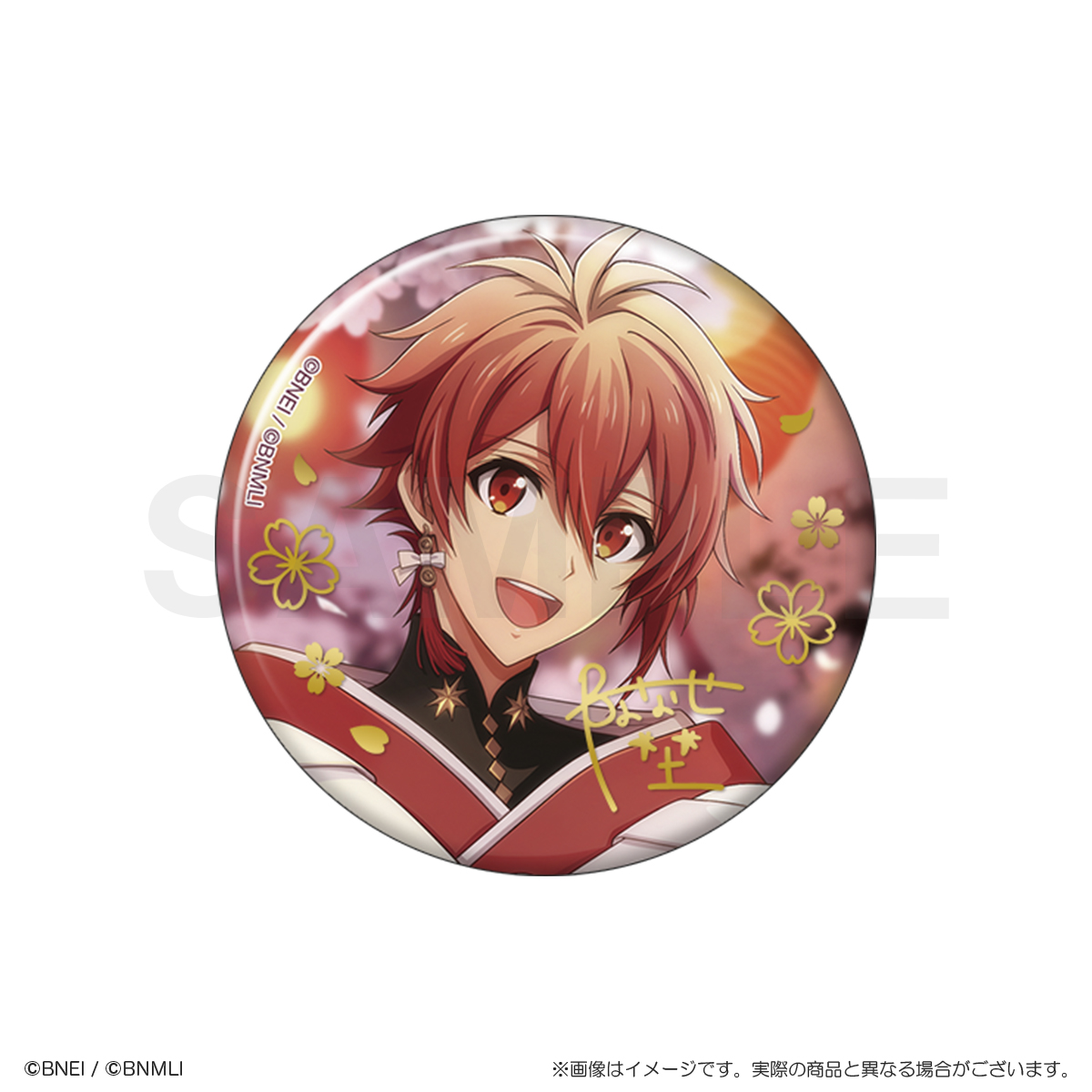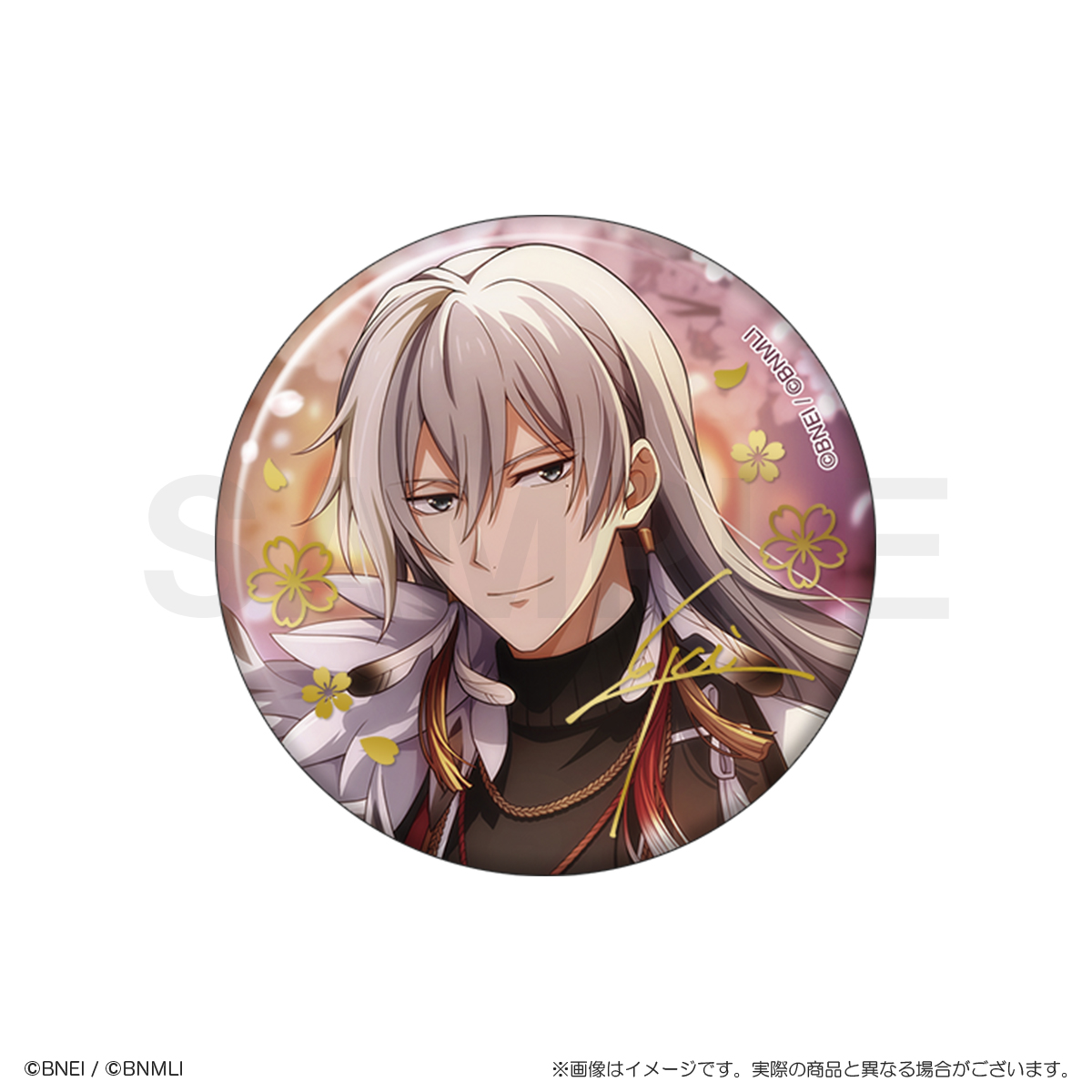 パール紙の優しい風合いに、金の箔押しの桜模様とメンバーのサインが特徴的な上品で華やかな缶バッジです!