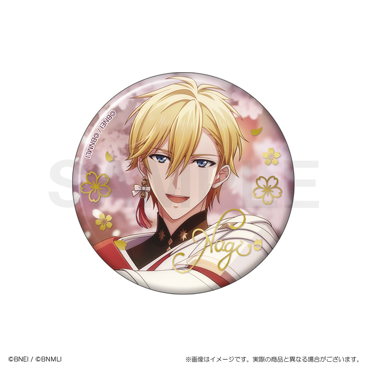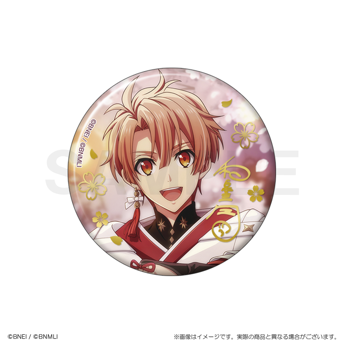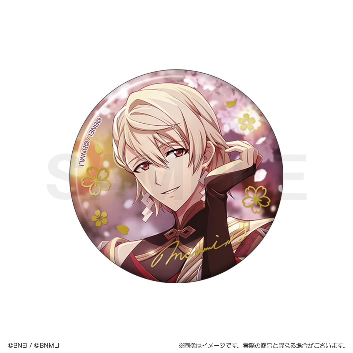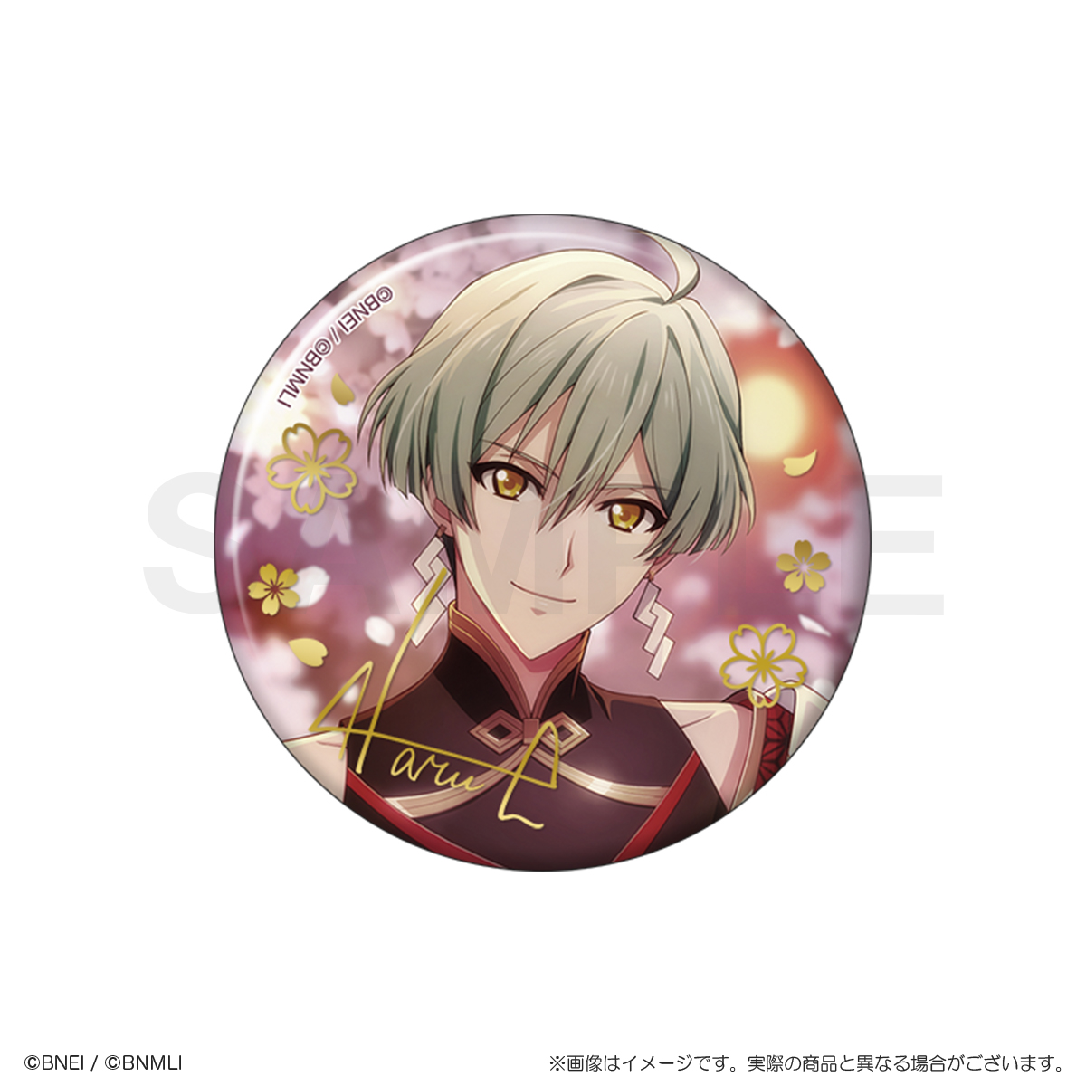 パール紙の優しい風合いに、金の箔押しの桜模様とメンバーのサインが特徴的な上品で華やかな缶バッジです!