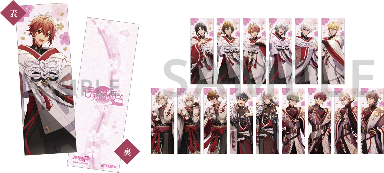 対象商品の「吉兆の調べ」グッズを1会計につき合計3,000円(税込)ご購入ごとに、「特典しおり」(全16種)をランダムで1枚、商品発送時に同梱してお届けいたします。