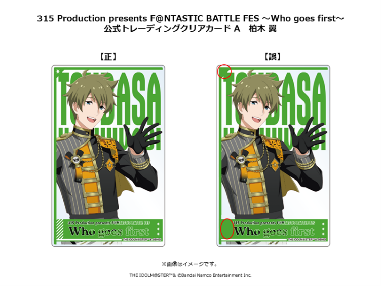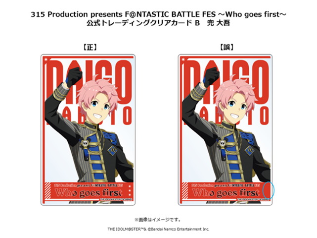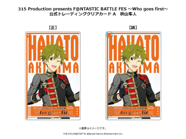 「315 Production presents F@NTASTIC BATTLE FES ~Who goes first~」イベント公式グッズのうち、下記の商品におきまして以下の不備があることが判明いたしました。