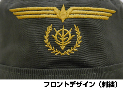 日差しよけの広いツバや、長めのあご紐が特長的なサファリハットにジオンマークを刺繍。