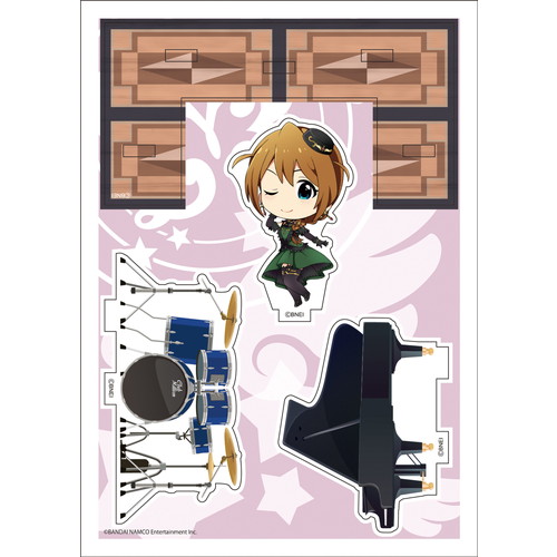 1枚のプレートからアイドルプレート・背景プレート・台座プレートを取り外し組み立てることで、個性豊かなアクリルフィギュアとして飾ることができます。