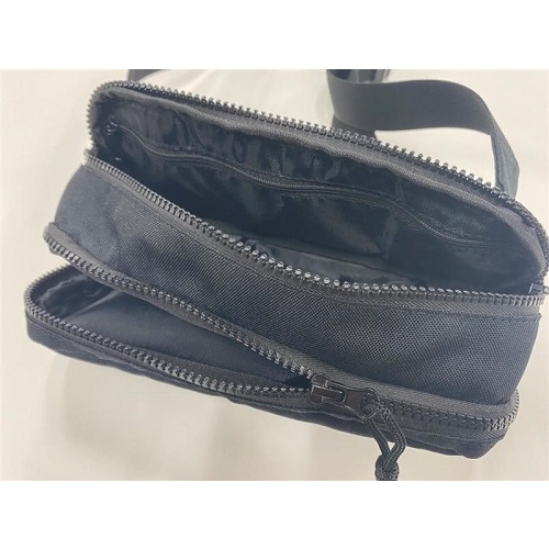 ストレイライトのロゴをワンポイントで入れたシンプルなデザイン。ジッパーは外側に2ヶ所、その内側にそれぞれ1ヶ所ずつあって仕分けもし易い使い勝手の良いボディバッグです。