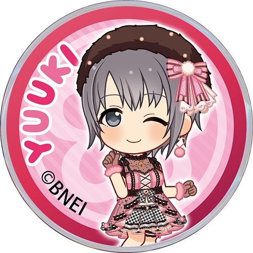 バッグや小物、衣類につけることで普段から担当アイドルをさりげなくアピール出来るプロデューサー必須アイテムです。とめ具(ピン)を取り付けたい場所の裏側から刺し、本体に固定します。