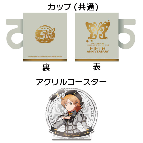 『アイドルマスター ミリオンライブ!』より、5周年を記念したデザインのカップと新衣装「プラウド・オブ・ステージver.」アクリルコースターのセットが登場!