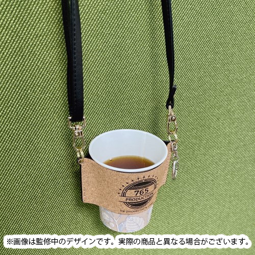 カフェ風ロゴと765プロダクションメンバーの名前が両面デザインされたカップホルダーです。