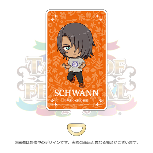 キャラクターの描き下ろしSDイラストがデザインされた、フォンタブ&チェーンのセットです。