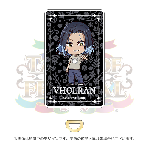 キャラクターの描き下ろしSDイラストがデザインされた、フォンタブ&チェーンのセットです。