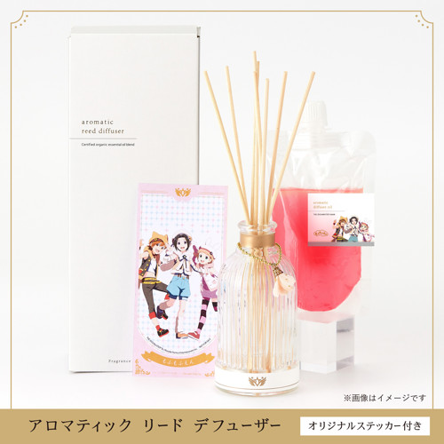 もふもふえんの「可憐で無垢なとろける甘さ。多幸感、愛らしさ」をイメージして、数種のオーガニックエッセンシャルオイルをブレンドした、オリジナルアロマティックリードディフューザーです。甘くてかわいいもふもふえんの香りをお楽しみください。