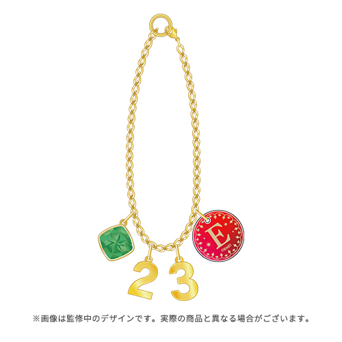 誕生石のエメラルドをイメージしたチャームがキラリと光るバッグチャームです。ブレスレットとしても身に着けることができます。