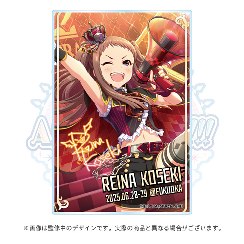 ※福岡Aの「渋谷凛」「小関麗奈」「久川凪」や福岡Bの「星輝子」「依田芳乃」など、デレステ10thツアーの中で複数公演に出演予定のアイドルのクリアカードは、すでに出演した公演で販売したクリアカードでも同じイラストが使用され、開催地と開催日の表記のみが変更となります。