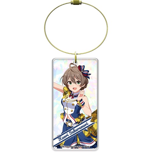 ミリシタ8周年衣装のアクリルキーホルダー。本体はホロ加工。バッグなどにも付け易いサイズです。