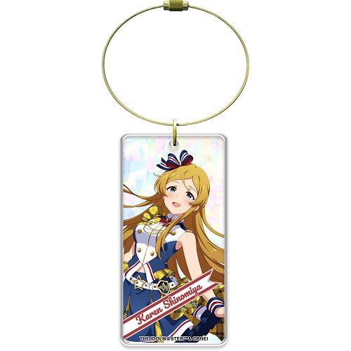 ミリシタ8周年衣装のアクリルキーホルダー。本体はホロ加工。バッグなどにも付け易いサイズです。