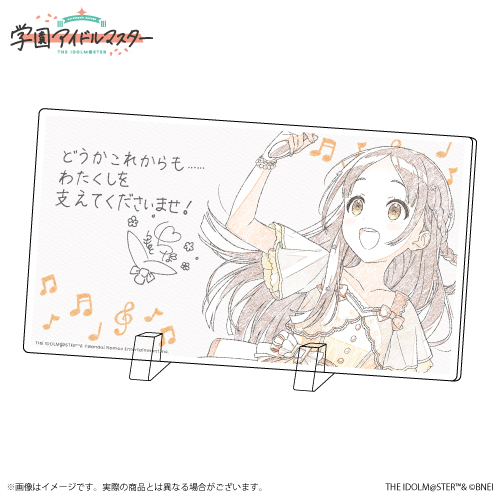 ・直筆風のコメントが入った飾れるスタンド付きアクリルパネル