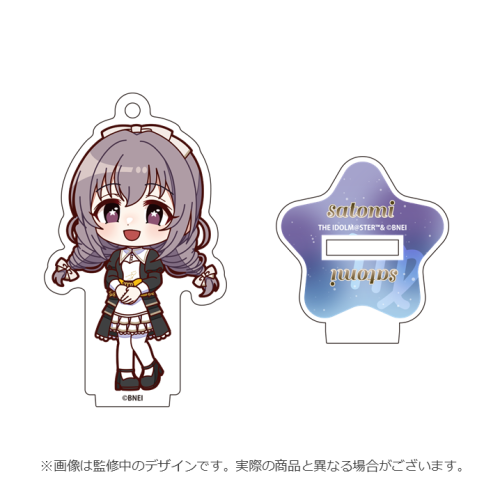 | 商品仕様 | ■ミニラメアクリルスタンド 素材:アクリル 本体サイズ:約W31~42×H60~65×t3mm ※商品種類によってサイズが異なります。 台座サイズ:約W35×H38×t3mm ■プリズムアクリルキーホルダー 素材:アクリル、鉄 サイズ:約W58×H59mm×t3mm(※金属パーツを除く) ■ガラススタンドクリップ 素材:ガラス、ABS、鉄、アクリル サイズ:約W45×H45×D19mm ■ホログラム缶バッジ 素材:紙、ブリキ サイズ:約φ56mm ■メッセージカード 素材:紙 サイズ:約W127×H89mm |