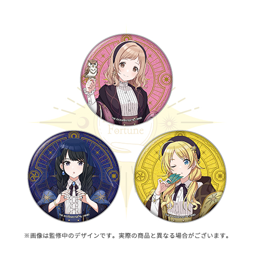お店で働くアイドル達の描きおろしイラストをあしらった缶バッジです。