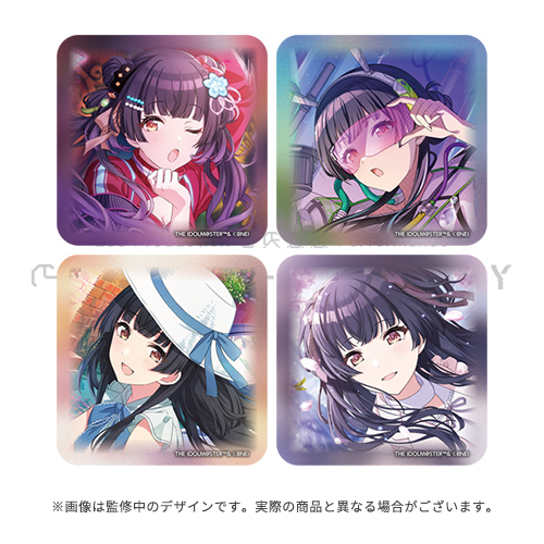 黛 冬優子さんの全4種のイラストからいずれかが手に入るランダム形式の缶バッジ。