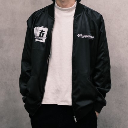 このジャケットは、エースコンバット8ゲーム制作陣も着用しているデザインをベースに、袖のカラーをアレンジした限定モデルです。エースコンバット8の主人公が所属するジョーカー隊のエンブレムや主人公のパーソナルマークをあしらった、細部までこだわった刺繍が施され、エースコンバットファンには絶対に見逃せない存在感のある一着に仕上がっています。