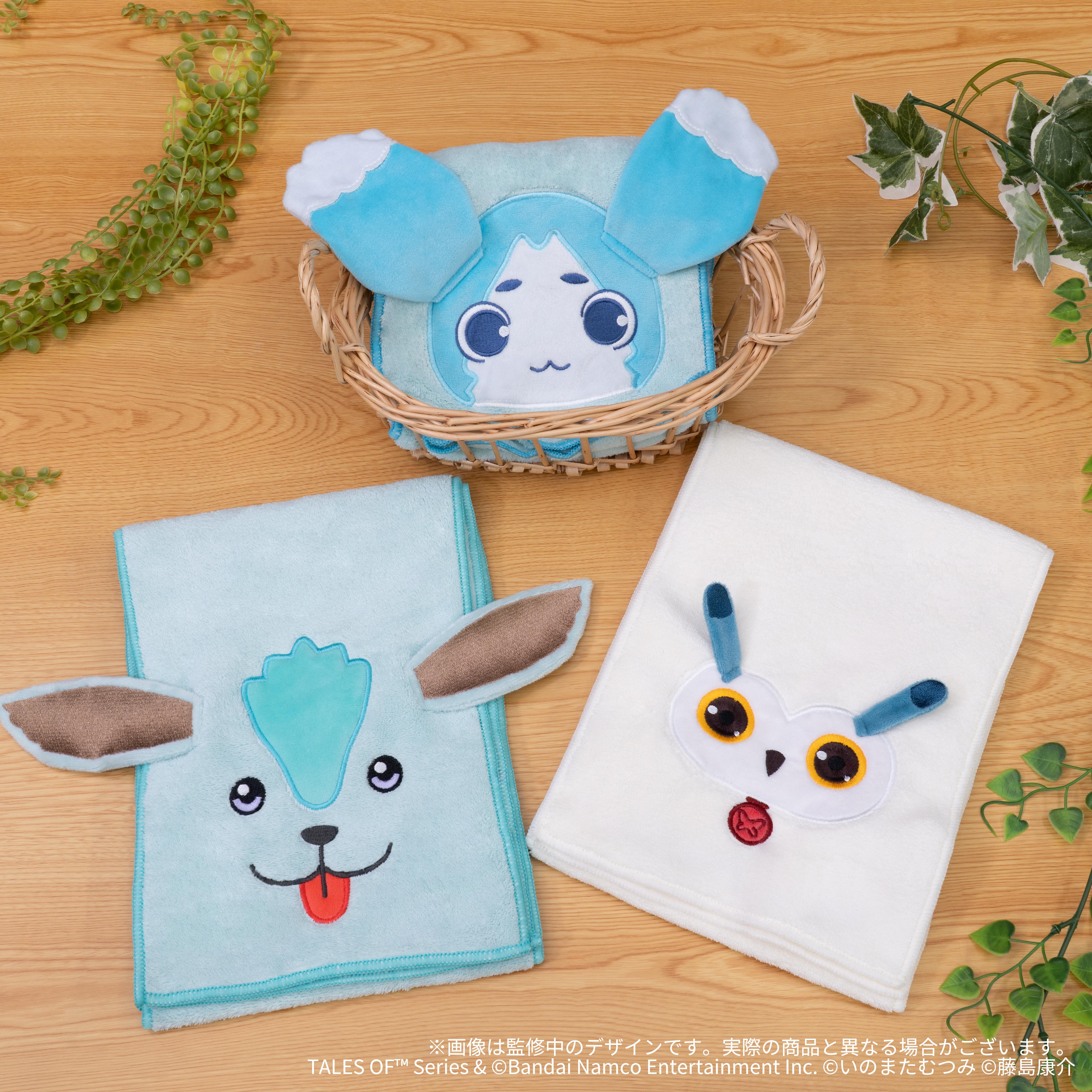 マスコットの顔が刺繍されたマフラータオルです!