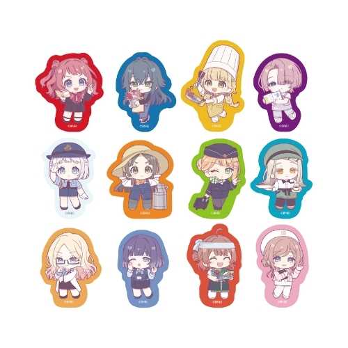 さまざまな職業になりきったアイドルたちのフレークシールセットです。