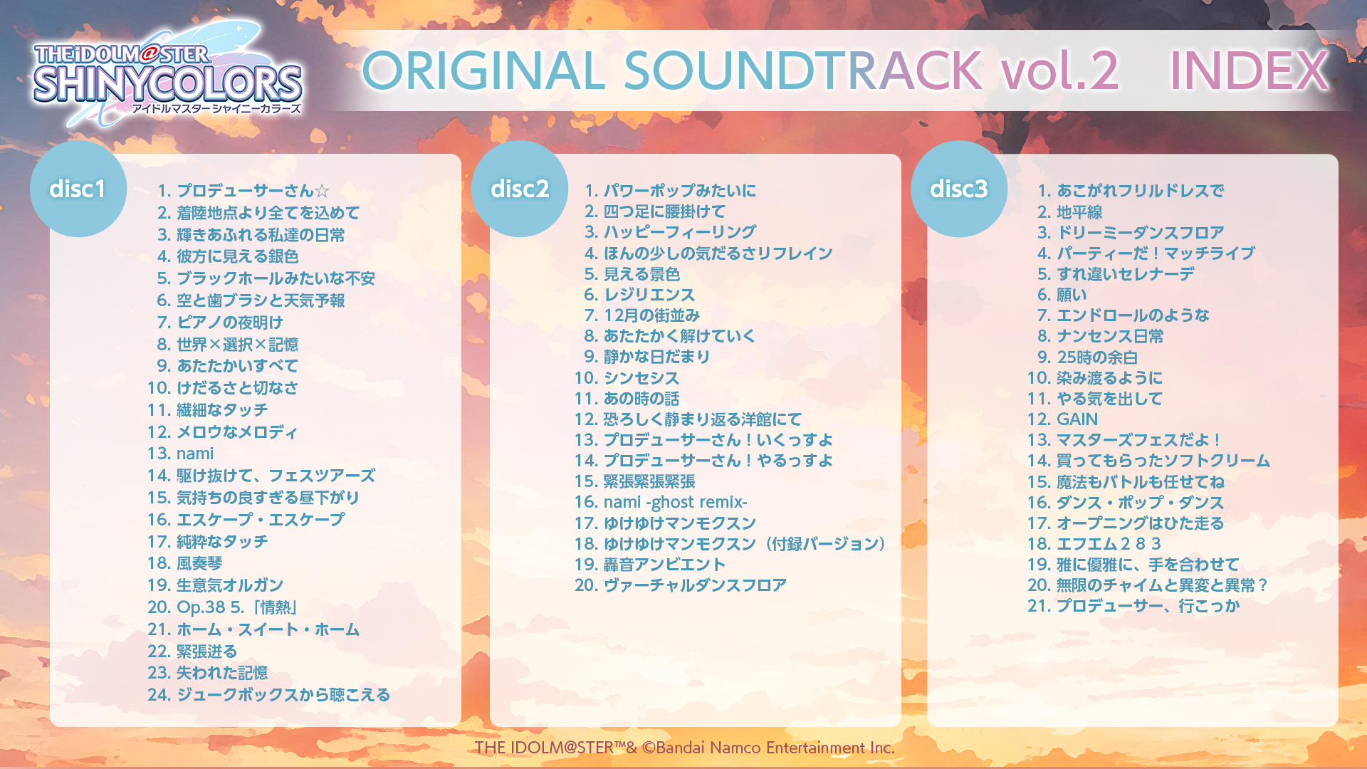 トップ > キャラクター > アイドルマスター シリーズ > アイドルマスター シャイニーカラーズ > THE IDOLM@STER SHINY COLORS ORIGINAL SOUNDTRACK vol.2【特装版】