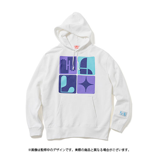 『LOVE LAIKA』をイメージしたグラフィックを落とし込んだフーディー。左袖に配された、本プロジェクトのために特別に制作した『LOVE LAIKA』をイメージしたネームがポイントです。