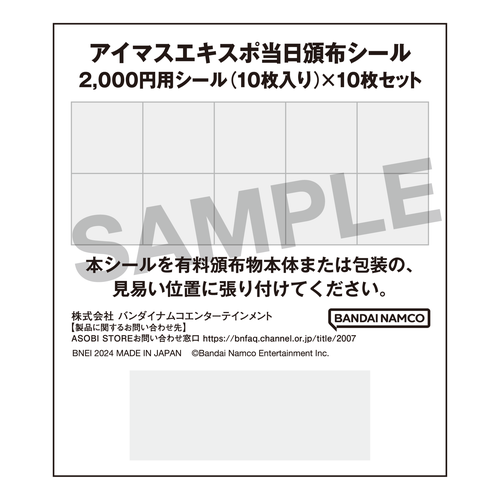 アイマスエキスポ当日頒布シール 2,000円用シール(10枚入り)×10セット