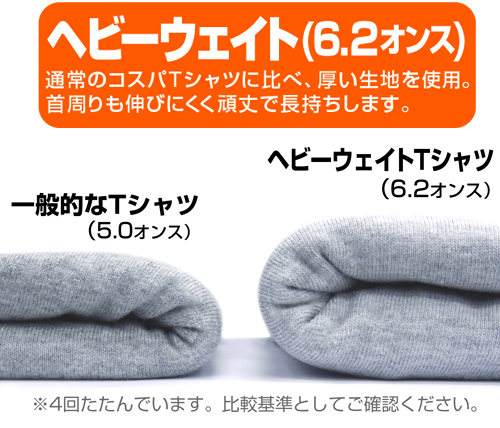 通常のコスパTシャツに比べ生地が厚く(6.2オンス)首周りのリブも頑丈で伸びにくい、連邦のヘビーウェイトTシャツ。