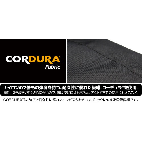 ・ナイロンの7倍もの強度を持つ、耐久性に優れた繊維、コーデュラ®を使用。摩耗、引き裂き、すり切れに強いので、普段使いにはもちろん、アウトドアでの使用にもオススメ。