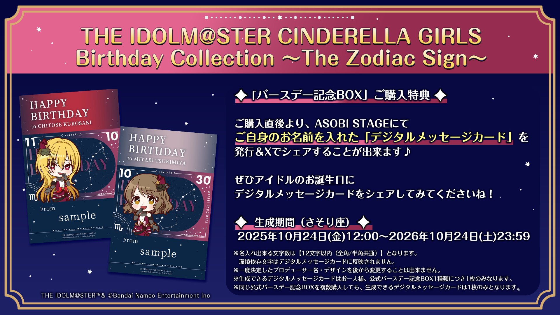 ※生成できるメッセージカードはお一人様、公式バースデー記念BOX1種類につき1枚のみなります。