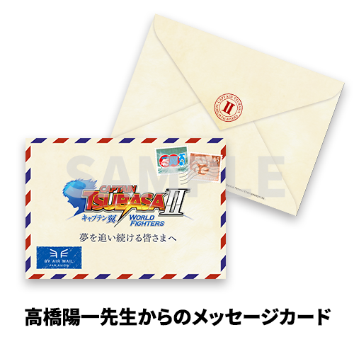 | 商品内容 | 【超特装版】 ・ゲーム本編 <アイテム> ・高橋陽一先生からのメッセージカード ・オリジナルネックストラップ ・ゲームオリジナルBGMデジタルサウンドトラックを入手できるシリアルコードチラシ ・オリジナルステッカーシート ・メインビジュアルタペストリー ・ディスプレイ用ミニサッカーボール(翼が若林に叩きつけた挑戦状デザイン) ・ユニフォーム風Tシャツ(ゲームオリジナルデザイン) ・高橋陽一先生描き下ろしキャラファイングラフ(シリアルNo.付) <ゲーム内デジタルコンテンツ> ・シーズンパス ・アルティメットエディション特典セット |