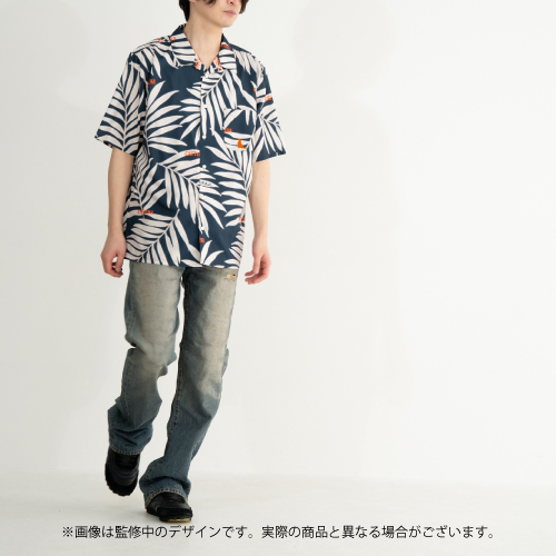 <限定セット>有栖川夏葉×PAIKAJI アロハシャツ ネイビー Lサイズ 【特別付録:アクリルスタンド(有栖川夏葉)+コラボアクリルパネル】