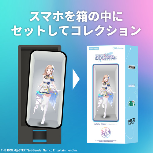 「デジタルフィギュアボックス」にスマホをセットすると、デジタルフィギュアを魅力的にお部屋に飾ることができます。