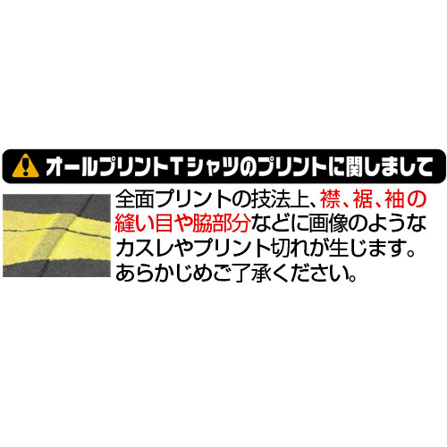 ※全面プリントの技法上、縫い目や脇下部分にカスレやプリント切れが生じます。ご了承ください。
